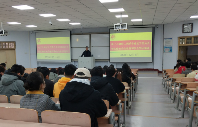 12月4日,威廉williamhill电子与通信工程系在睢阳校区1号楼308教室召开了实训动员会,电子信息工程专业和通信工程专业18级和19级全体学生参加了动员会、学系主任曾庆国就接下来为期两周的集中实训进行了培训。