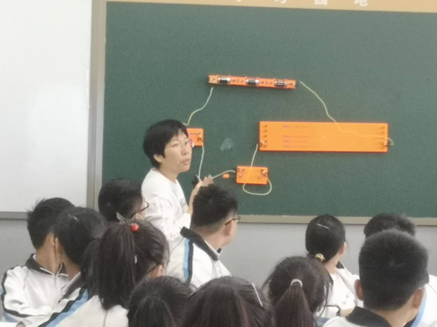 在商丘市第一中学新校区的801班,指导教师崔自明老师为他们做了《光的直线传播》的示范课。崔老师以知识逻辑做为课堂教学的主线,用大量的实验作为物理结论的证据,崔老师语言幽默,启发性强。授课结束后,同学们都感到收获满满。随后,同学们又来到907班,观摩了张莉老师的《电阻》的课堂教学。作为国家级优质课一等奖获得者,张老师亲和力强,课堂教学气氛活跃,在张老师的引导下,学生将实验与理论相融合,不知不觉中进行了一节科学探究课的学习。