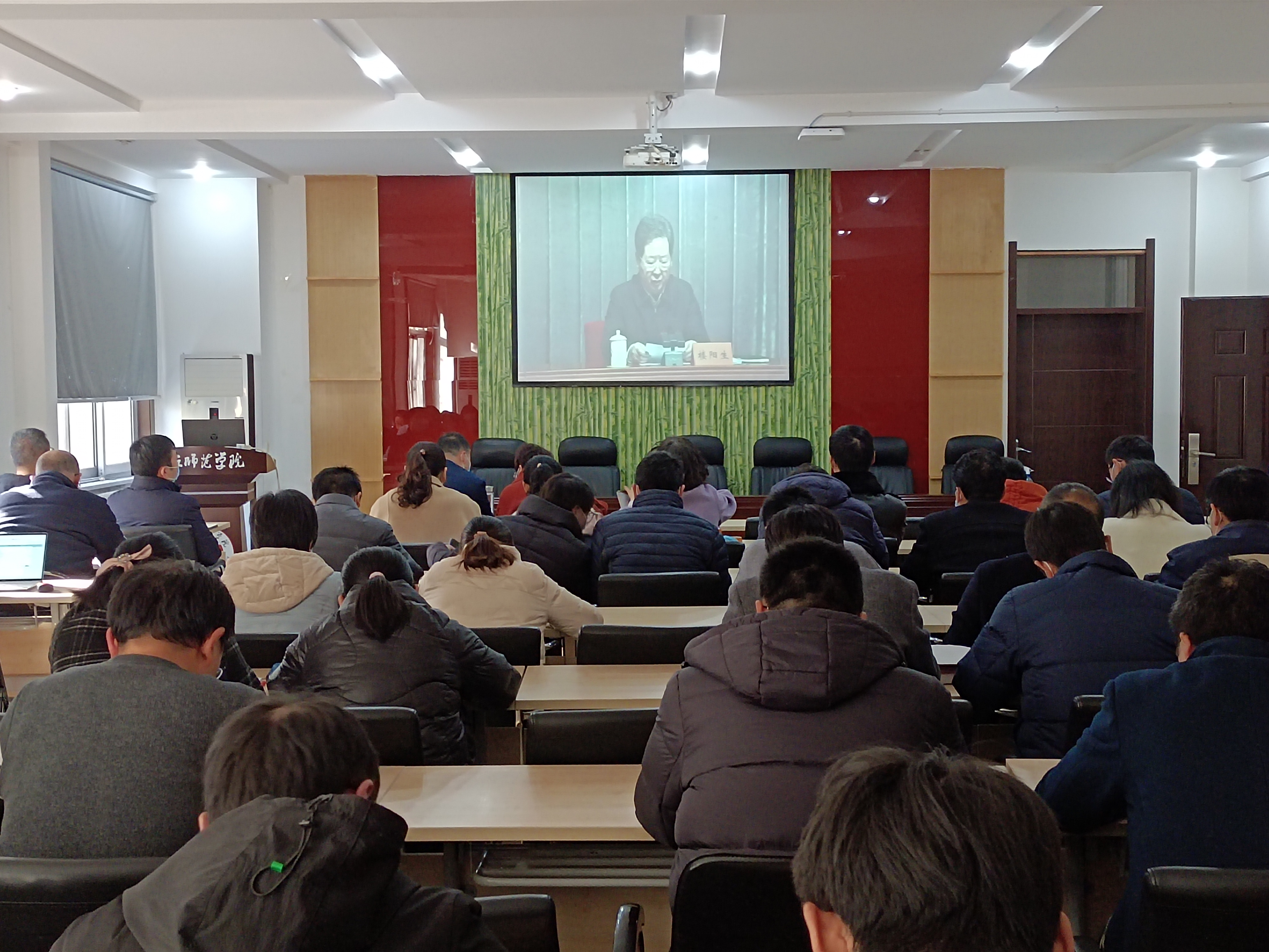 12月3日,威廉williamhill组织全体教师在睢阳校区观看党的十九届六中全会宣讲视频。