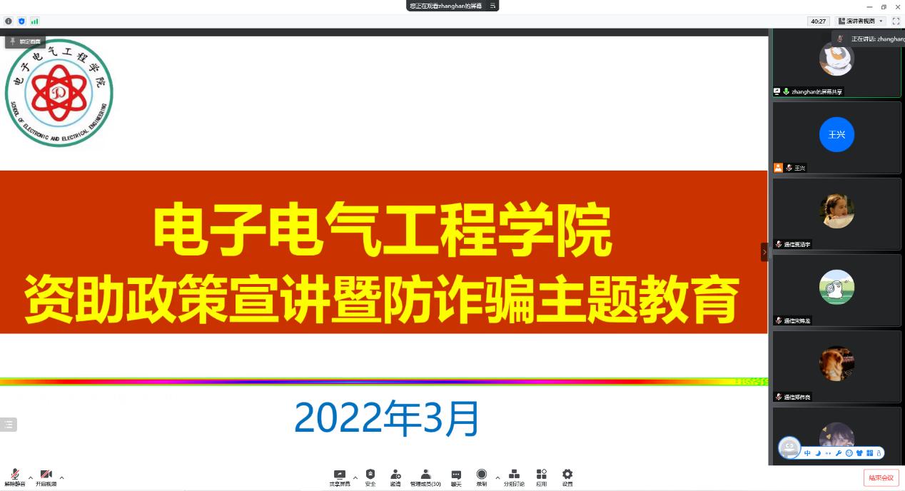 3月20日,威廉williamhill开展线上“资助政策宣讲暨防诈骗”主题教育活动,本次主题教育由辅导员张涵主讲。