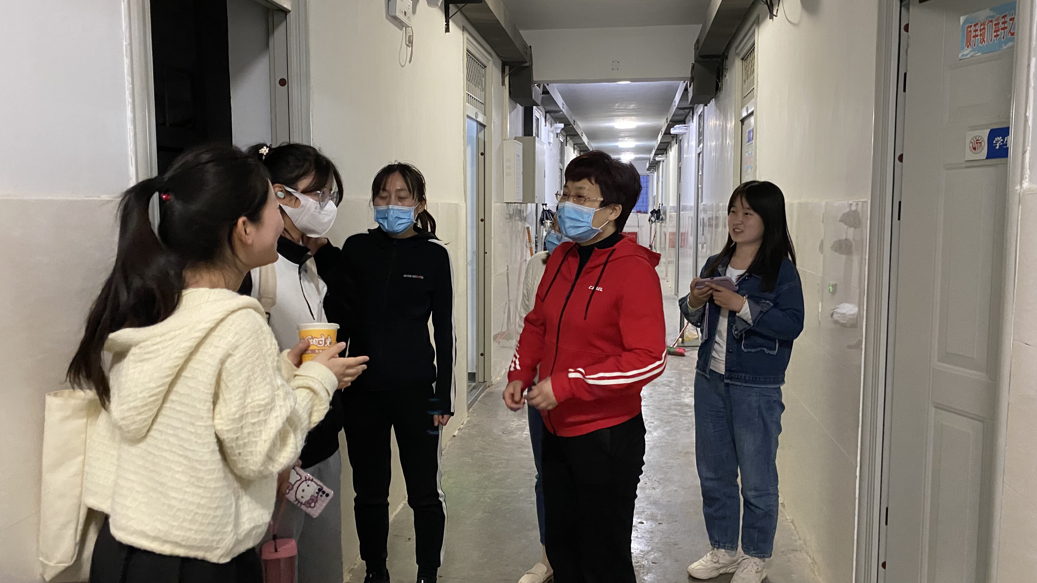 学生们对于领导老师们的走访活动表示感谢,同时也感受到了学校及学院对学生们的关心。同学们纷纷表示,她们会注意宿舍环境卫生和用电用水安全,勤通风、常消杀,积极面对当前的学习和生活,争取让学院领导老师们放心。