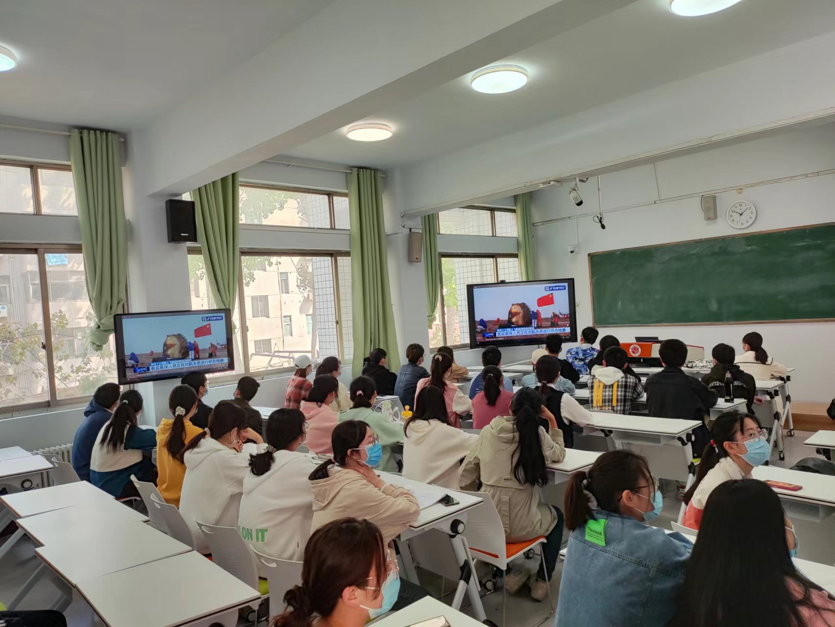 4月16日,威廉williamhill于睢阳校区组织全体学生分班集中收看“神舟十三号载人飞船航天英雄回家”直播。