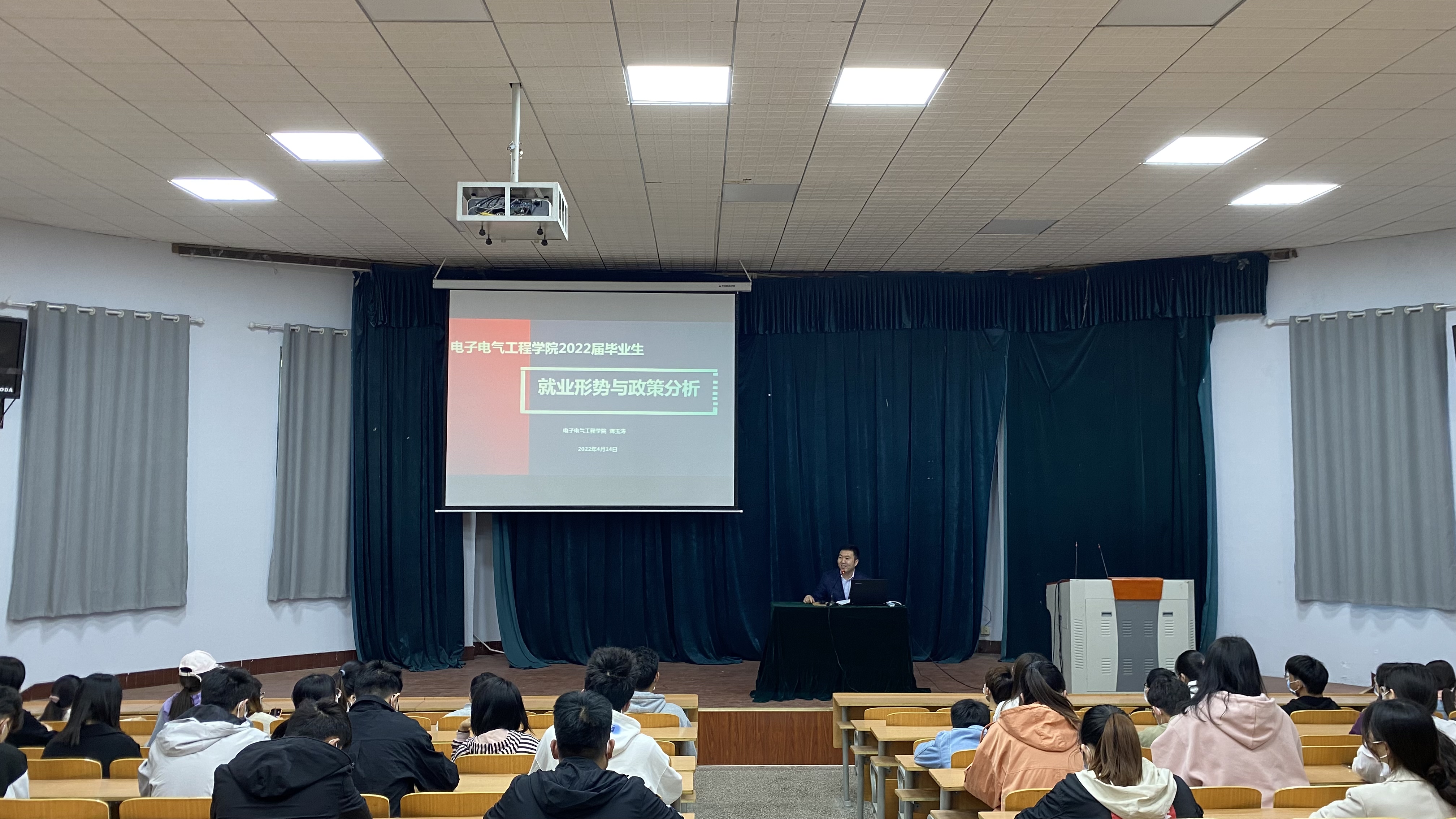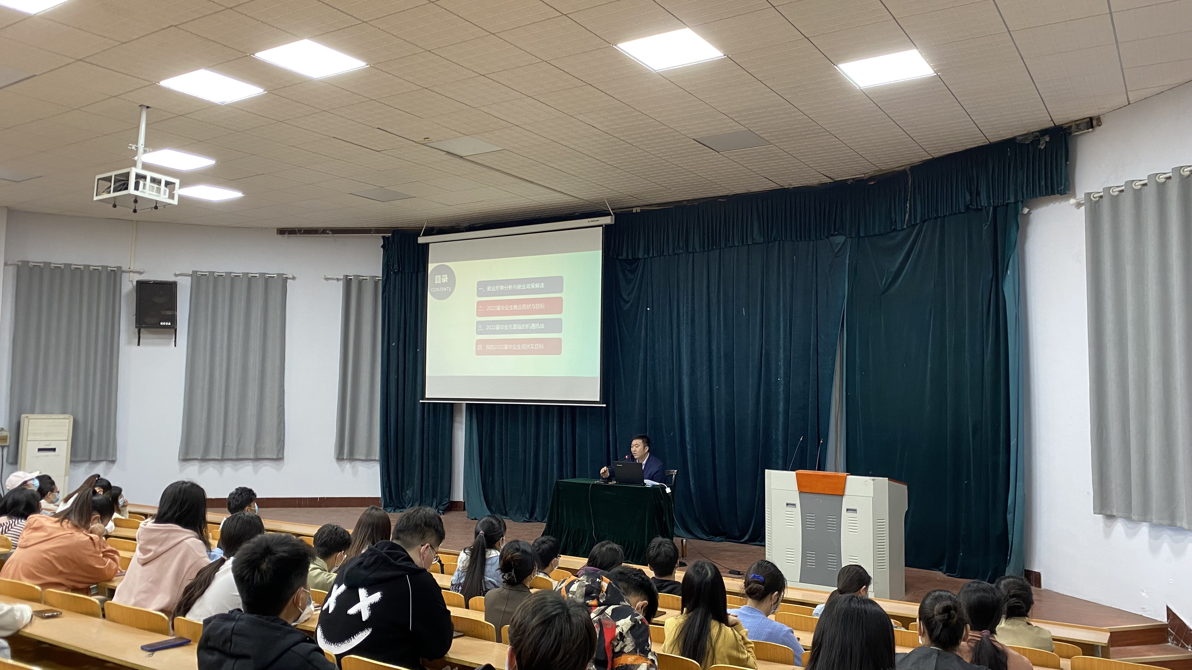 4月14日,威廉williamhill党委副书记蒋玉涛在睢阳校区为2022届毕业生上就业形势分析与政策分析课。