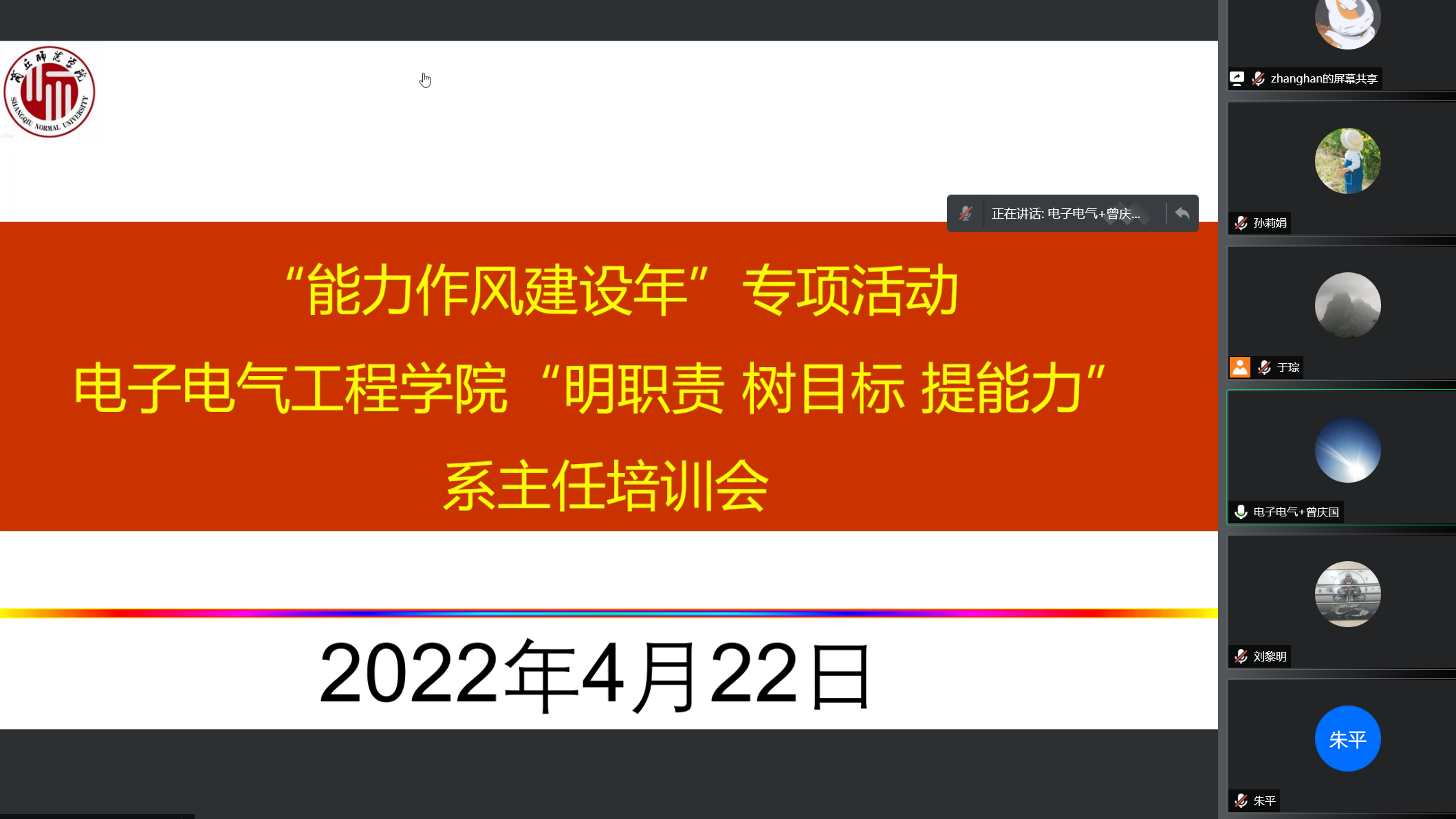 4月22日,威廉williamhill举办“能力作风建设年”之系主任素质提升专项培训。本次培训以“明职责、树目标、提能力”为主题,学院党政领导班子成员、学系主任、副主任、实验中心主任共19人参加培训。