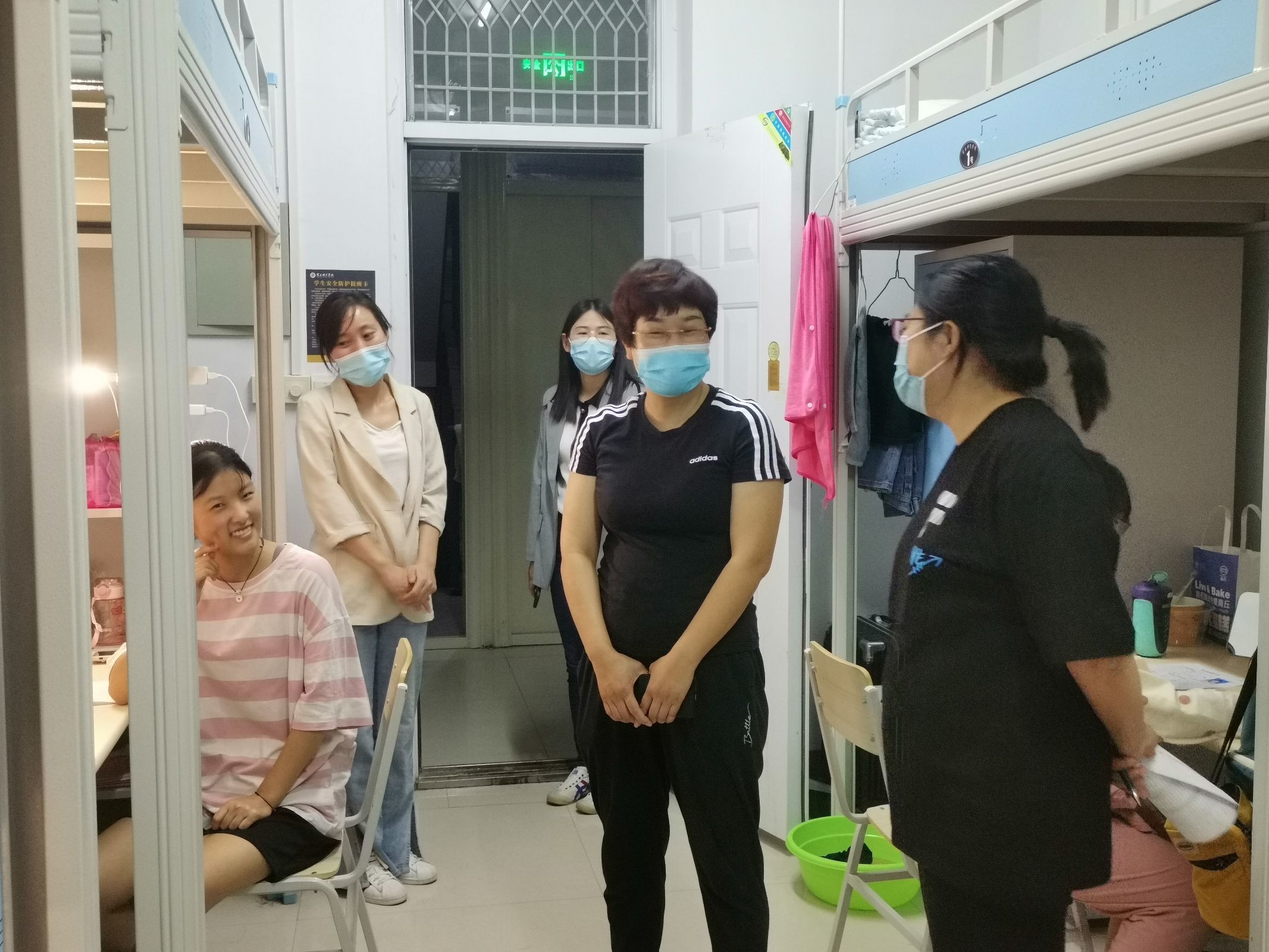 走访过程中,领导老师们仔细询问了新生入校后的生活学习情况,并就学校的疫情防控政策等问题进行了深入讲解,鼓励他们树立远大理想,做好人生和学业规划,积极拥抱大学生活。在学习生活中无论遇到什么问题和困难,都要与辅导员班主任老师沟通反馈,学院永远是大家的坚强后盾。最后领导老师们叮嘱同学们杜绝使用违规电器,加强宿舍日常卫生管理,做好自身疫情防控措施,共建和谐文明积极向上的宿舍文化。