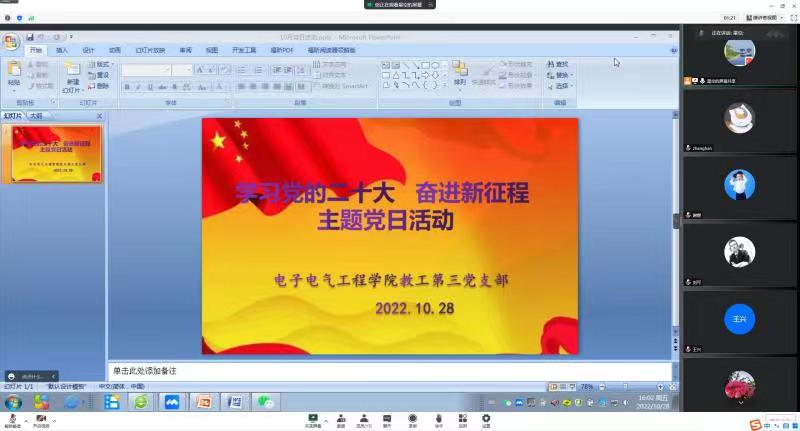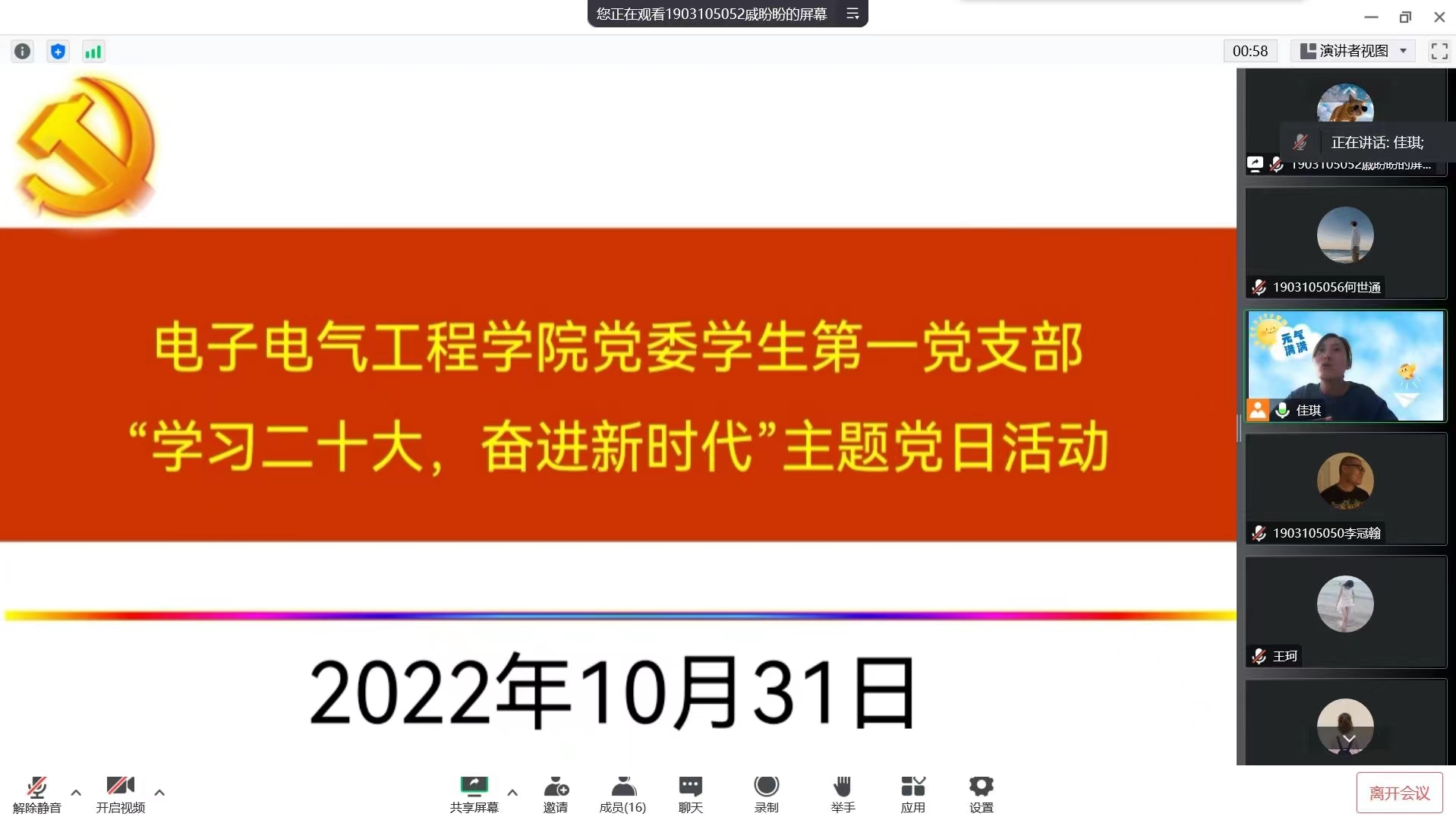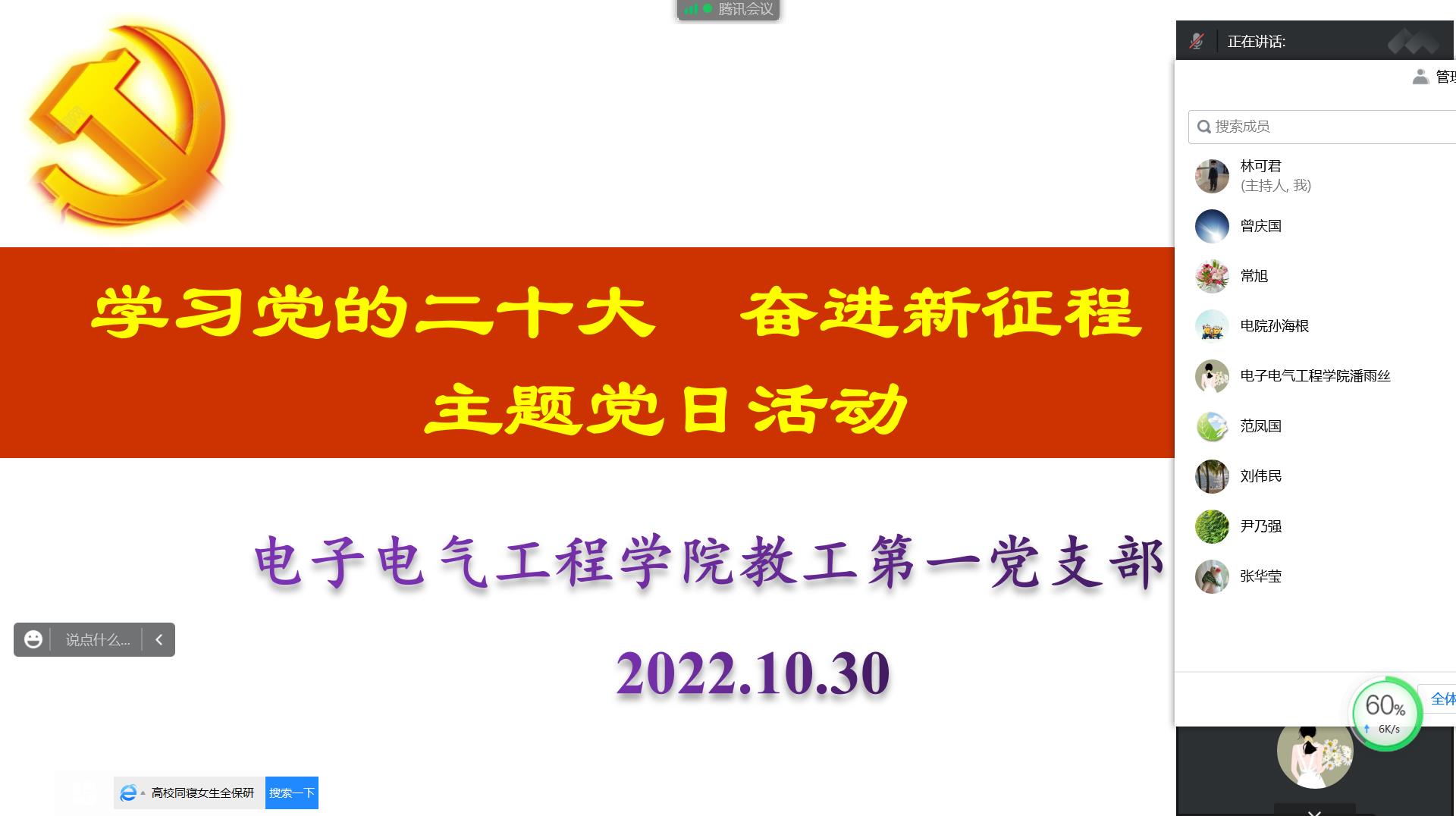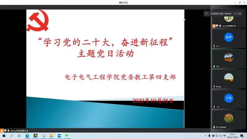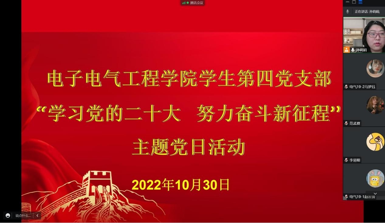 10月25日至10月31日,我院各党支部于线上相继开展“学习党的二十大,奋进新征程”主题党日活动,全体师生党员参加。
