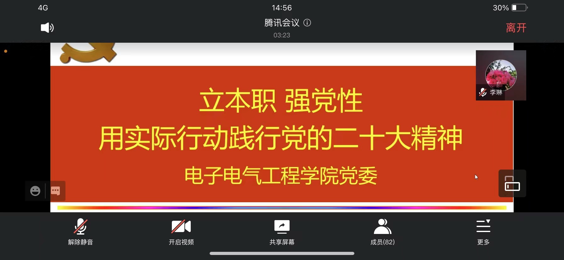 11月11日,威廉williamhill党委于线上召开“立本职、强党性,用实际行动践行党的二十大精神”专题会议,安排部署学习宣传贯彻党的二十大精神系列工作,本次会议由院党委书记李琳主持,全体教职工参会。