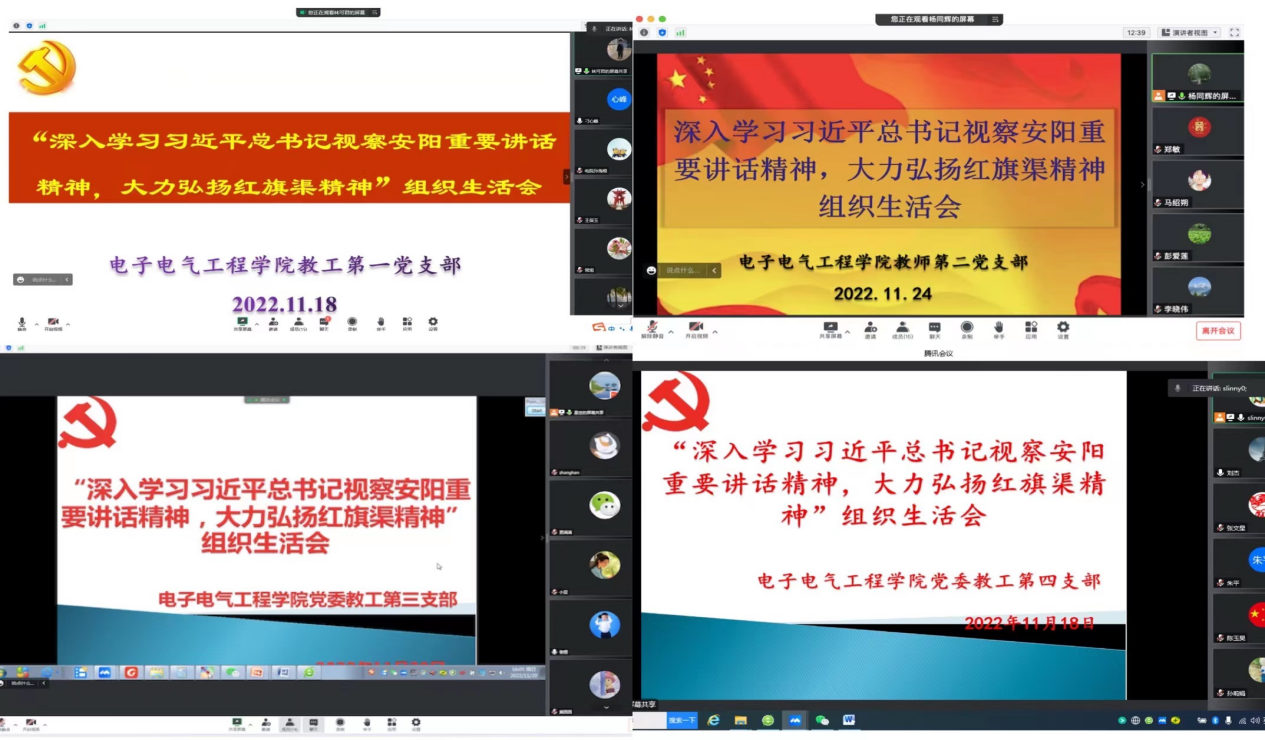 11月18日-24日,我院各党支部于线上召开“深入学习习近平总书记视察安阳重要讲话精神,大力弘扬红旗渠精神”专题组织生活会,学院领导班子成员以普通党员身份参加各自所在党支部组织生活会。