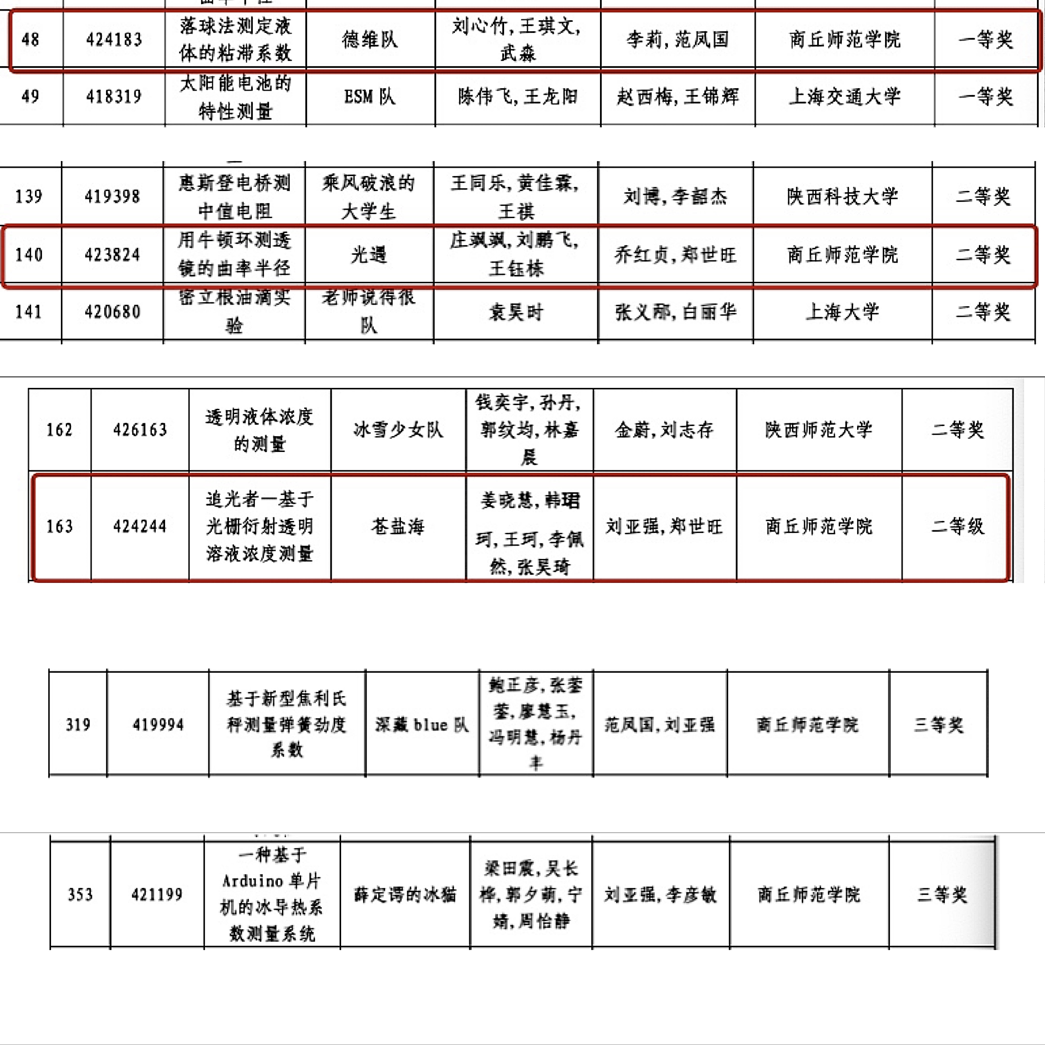 2022年第八届全国大学生物理实验(创新)竞赛由西安交通大学承办,参赛高校500多所,参赛队伍2040支。威廉williamhill由李莉、范凤国、郑世旺、李彦敏、刘亚强、乔红贞六位教师参与指导的21位学生共5支队伍参加了这次国赛,参赛队伍全部获奖,其中有1支队获一等奖,2支队获二等奖,2支队获三等奖,即由刘心竹、武淼、王琪文组成的“德维队”队获一等奖;由庄飒飒、刘鹏飞、王钰栋组成的“光遇”队和姜晓慧、韩珺珂、王珂、李佩然、张昊琦组成的“苍盐海”队双双获二等奖;由梁田震、吴长桦、郭夕萌、宁婧、周怡静组成的“薛定谔的冰猫”队和由鲍正彦、张蓥蓥、廖慧玉、冯明慧、杨丹丰组成的“深藏blue”队双双获三等奖。威廉williamhill学子连续三年参加了全国大学生物理实验竞赛,每年都取得了优异成绩,今年再获佳绩,有效提升了我校物理实验教学质量和高素质创新性人才培养质量。