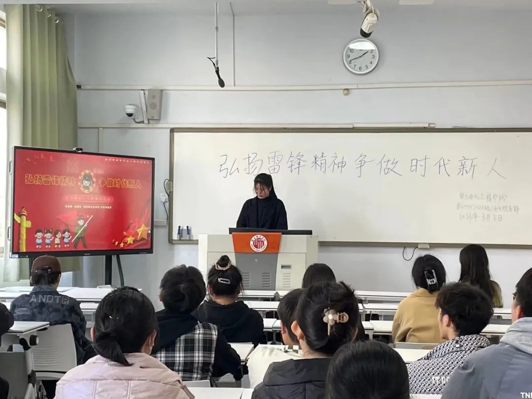 学院青马班成员深入各团支部开展“弘扬雷锋精神争做时代新人”主题团日活动。他们通过播放电影《雷锋》,重温助人为乐故事,让青年团员对雷锋的人物形象有更加清晰的了解。同时,他们宣讲雷锋精神,传承红色基因,号召青年团员学习雷锋好榜样,争做雷锋接班人,活动在歌曲《学习雷锋好榜样》中结束。
