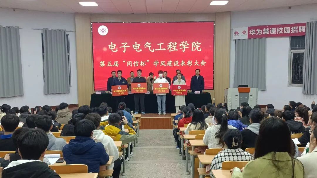 为表彰先进模范榜样,提升学风建设水平,3月20日,我院于睢阳校区召开第五届“同信杯”学风建设表彰大会,同信能源集团有限公司总工赵清宇、投资公司总经理耿鸿翔、设计一公司副经理潘龙莅临,我院领导班子成员、各学系主任及全体辅导员老师出席,各年级班干部参会。表彰大会由院党委副书记蒋玉涛主持。