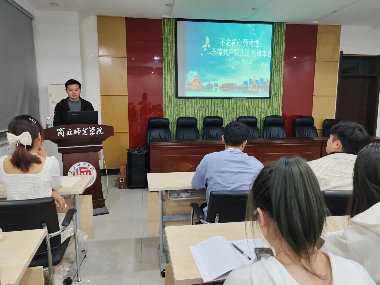课上,陈玉昊以党性的重要性为主线,主要讲述了新时代党员如何加强党性修养、在党性洗礼中坚守初心、在严格党的政治生活中加强党性锻炼、把自我改造作为终身必修课四部分内容。他要求大家,要从学习党的二十大精神和习近平新时代中国特色社会主义思想中深刻领悟新时代党性的内涵和发挥党员先锋模范带头作用的意义;要牢固树立全心全意为人民服务的宗旨,在为人民服务的实践中锤炼党性,磨砺意志,不断改造自我,提升本领;要在学院重点推进的工作中率先垂范,做到努力学习,善于发现问题解决问题,带头执行学院规章制度,主动帮助有困难学生,在急难苦重的工作中积极作为。