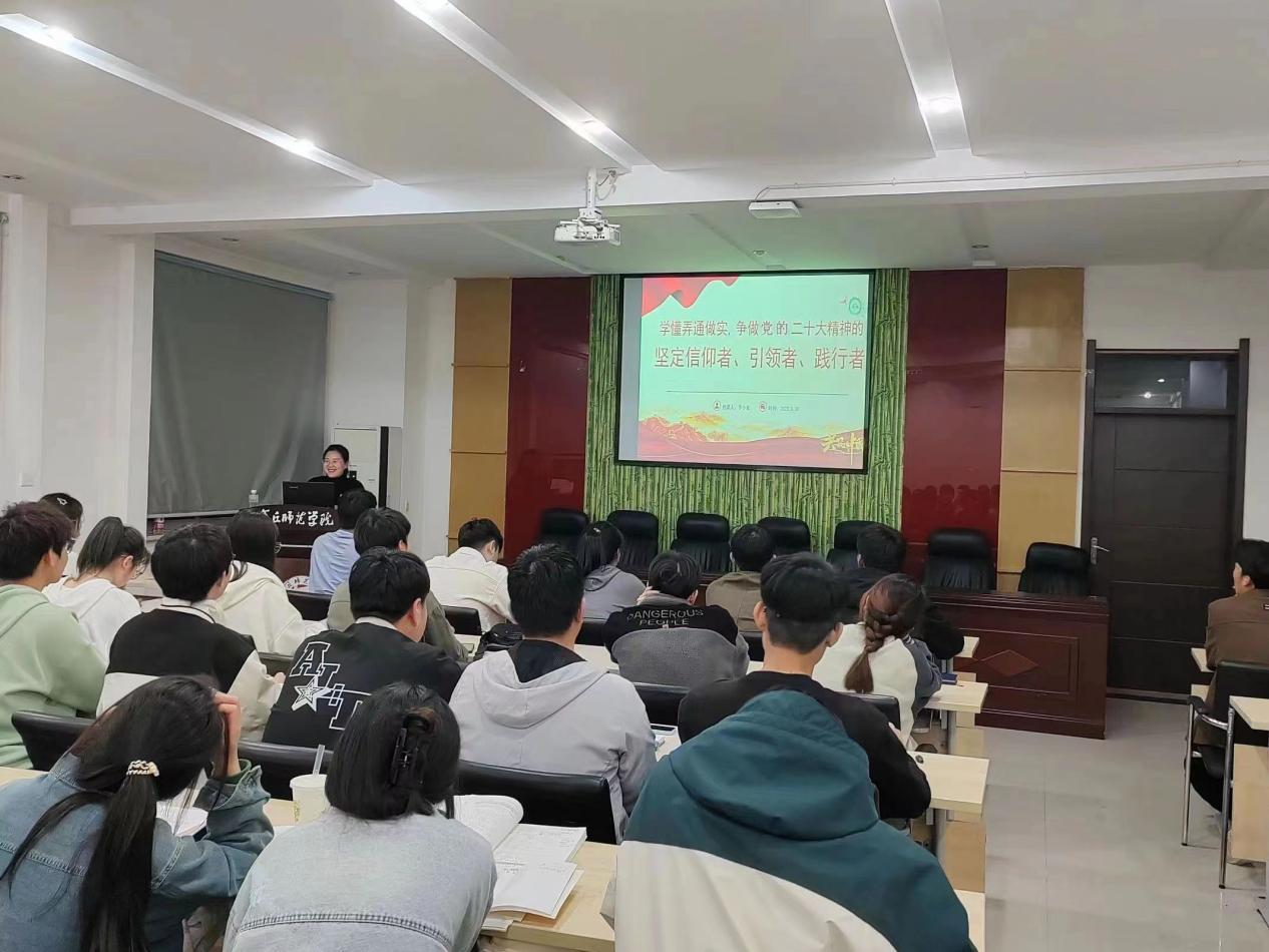 3月30日,我院学生第二党支部书记李小亚为入党积极分子上党课,本次党课主题为“学懂弄通做实,争做党的二十大精神的坚定信仰者、引领者、践行者”。