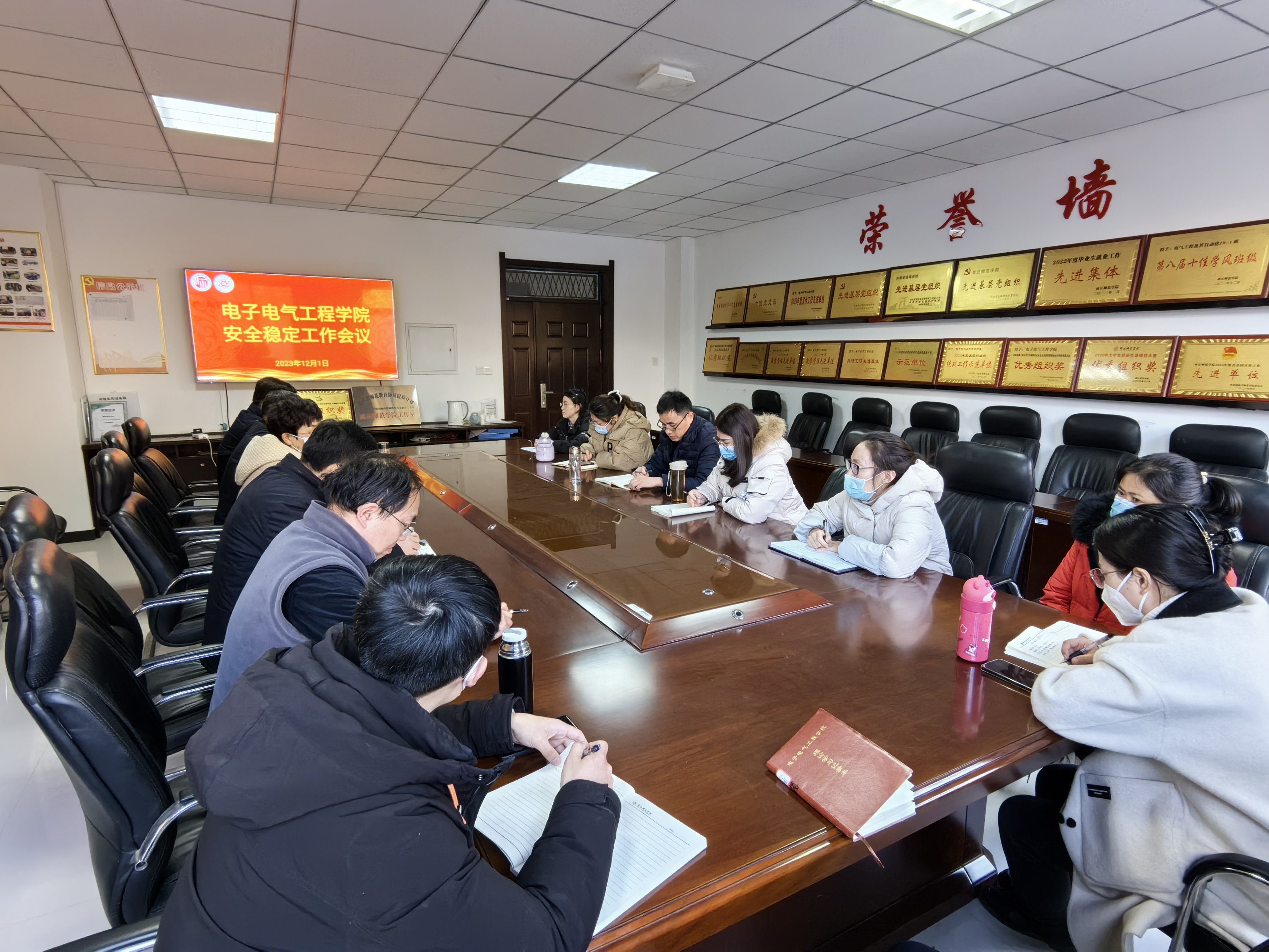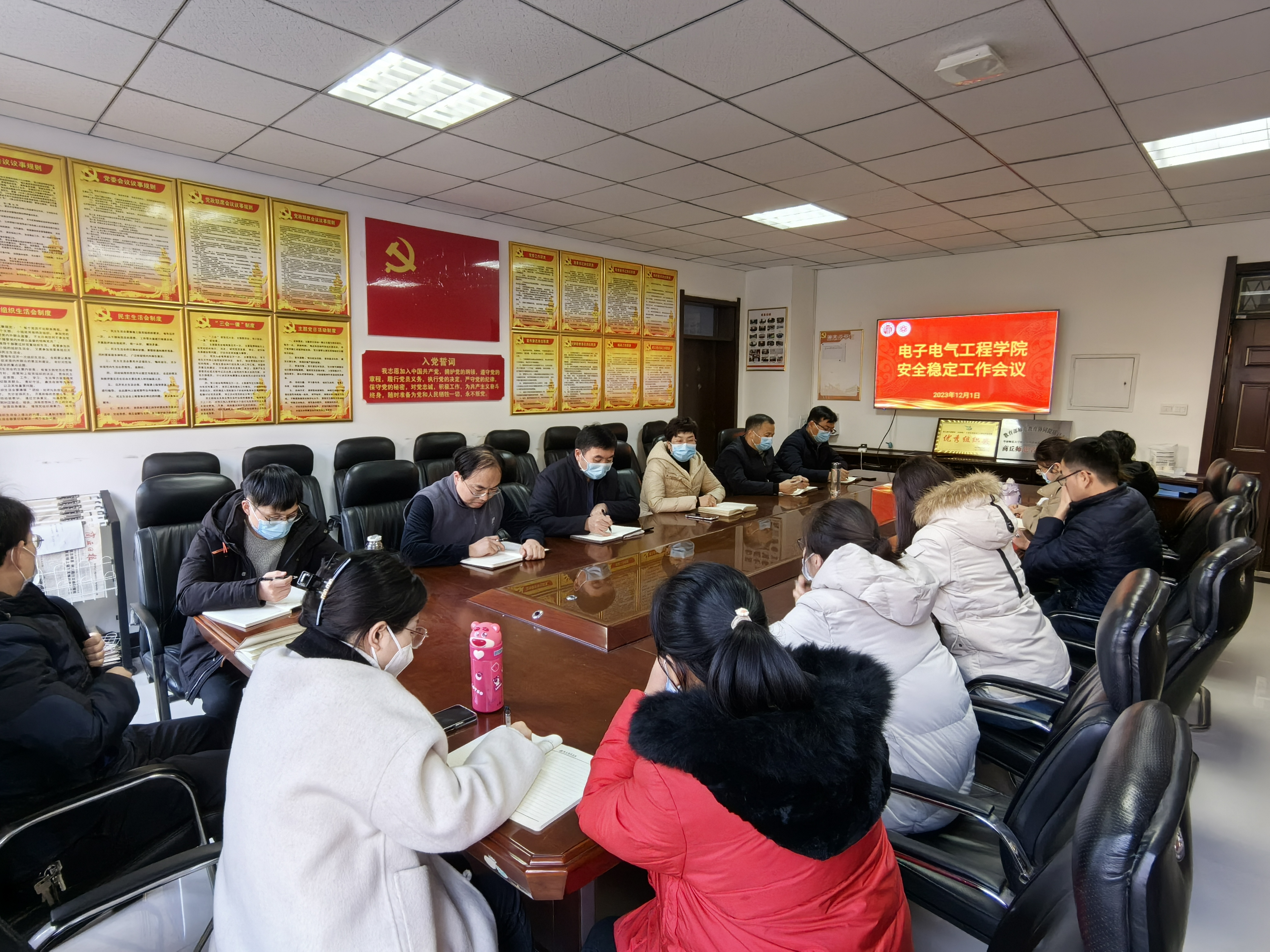 12月1日,我院在睢阳校区召开安全稳定工作会议,全体院领导出席,党政办、教学办、全体辅导员、实验室主任、全体实验员参会。