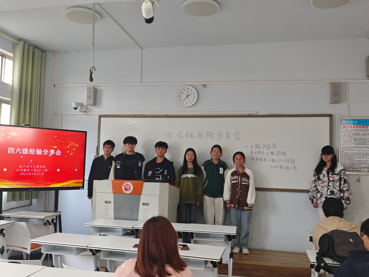 3月22日,汽车服务工程22-1班全体同学举行了“四六级经验分享会”主题班会。本次学习经验交流分享会,切实帮助班级同学们掌握应试技巧和备考方法,增强备考信心,激发备考动力,助力班级学生在英语四、六级考试中取得优异成绩。