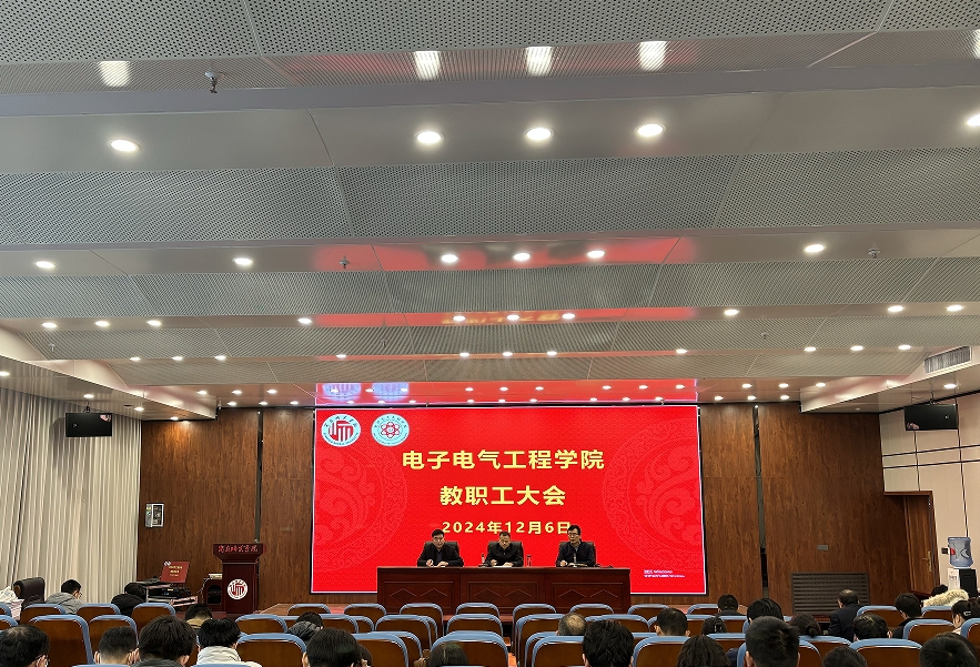 12月6日下午,我院在工科楼报告厅召开全院教职工大会,讨论我院2024年度绩效考核方案。学院领导班子出席,全体教师参会。