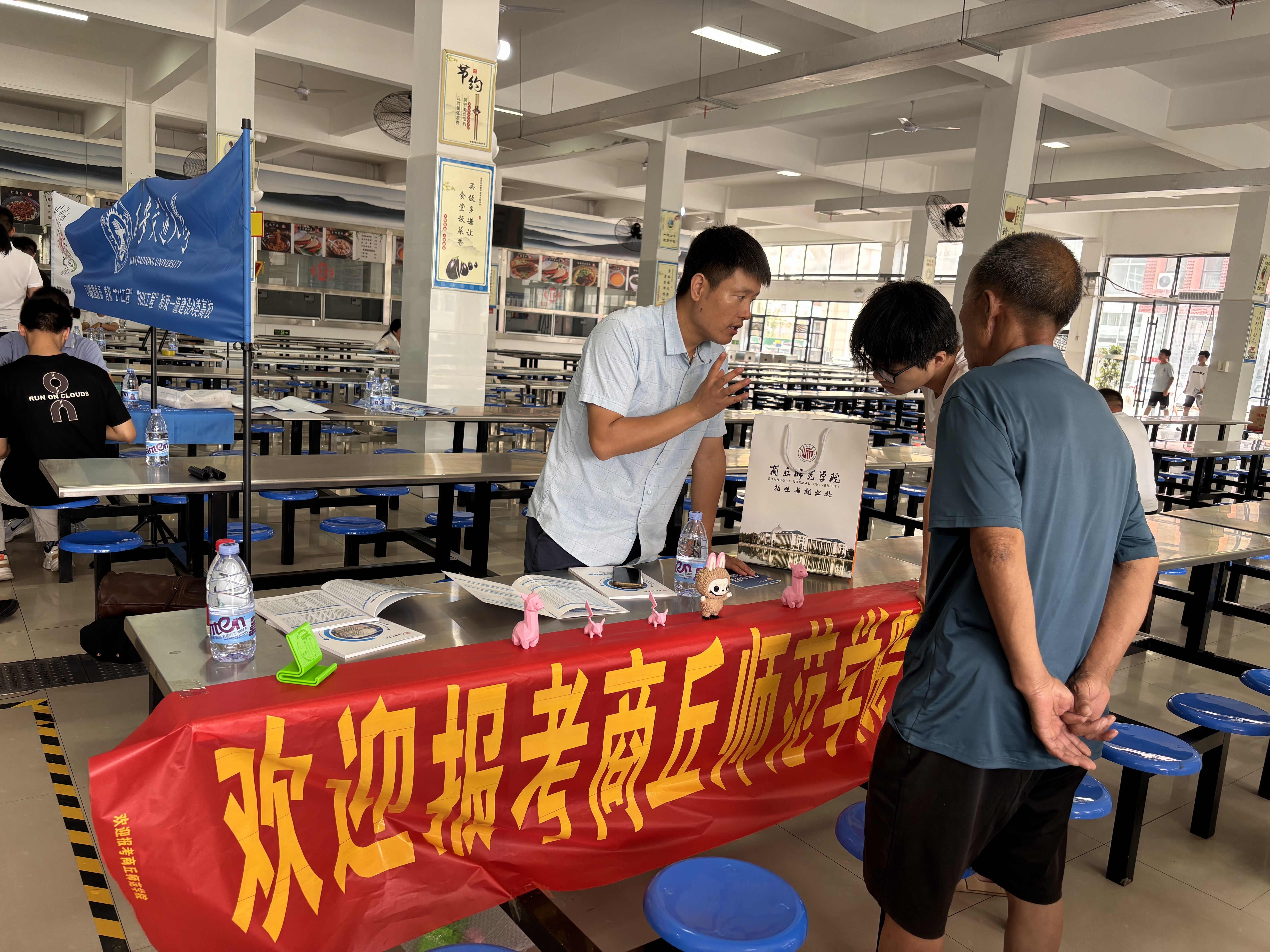 6月25日-27日,由学院领导、学科带头人、骨干教师组成招生宣传小组分别赴商丘市第一高级中学、柘城县第二高级中学、宁陵县高级中学、睢县高级中学、民权县高级中学等学校参加校园开放日活动,开展2025年招生宣传活动。