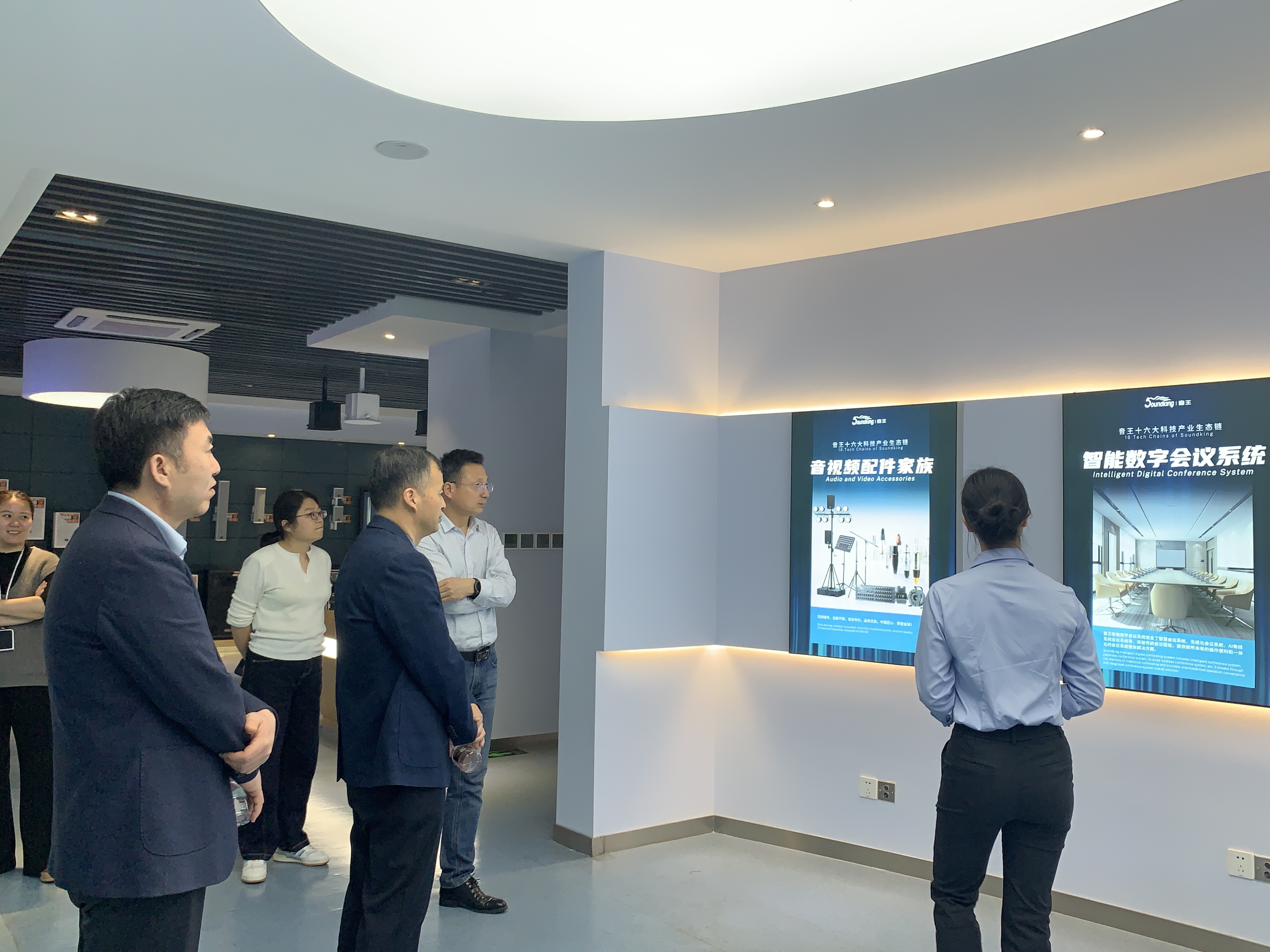 赵纲领一行参观考察了音王集团音视频创新技术科技馆、智慧文化综合体项目、元宇宙时代沉浸声技术研究实验室、生产车间等。
