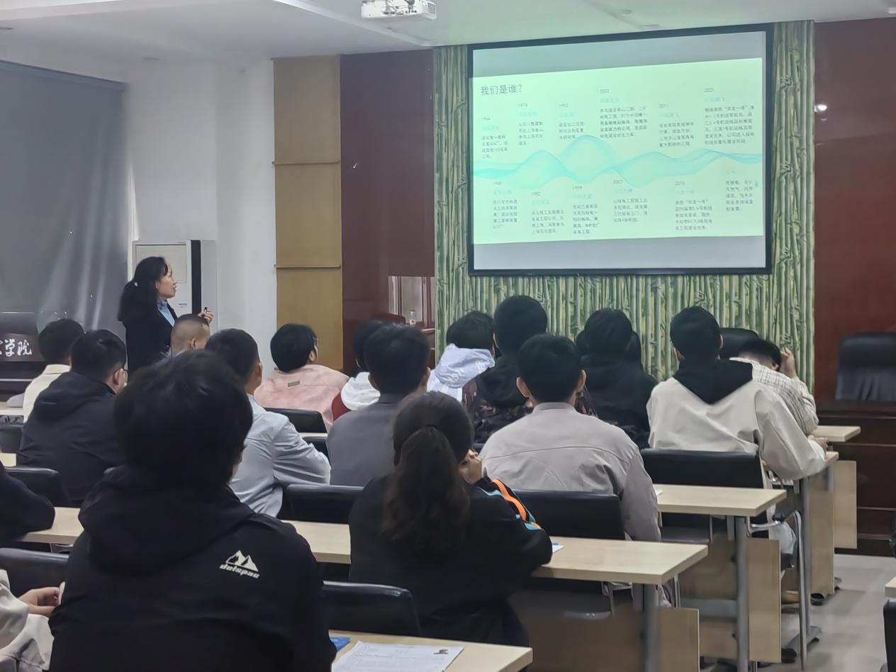 招聘经理吕华娟介绍中国核工业第五建设有限公司的基本情况和发展历程、公司定位、业务范围、岗位需求、工资待遇、职业发展路径等。宣讲结束之后,招聘单位根据报名情况进行了初次面试。