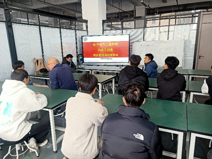 为了帮助汽车工程系2025届考研学子高效备战复试和调剂,提升应变能力与心理素质,按照学院统筹安排。2月28日下午,汽车工程系在工科大楼二楼的汽车实训中心举办“2025年考研复试调剂指导会”。本次会议由系主任刘杰老师主持,吸引了众多考研学生的参与,会议围绕复试策略、调剂技巧等核心问题展开深入交流,为学子冲刺复试、调剂提供精准指导。