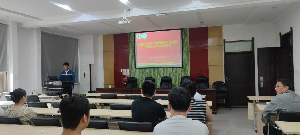 4月13日,我院召开中国大地财产保险股份有限公司河南分公司专场招聘会,2024届毕业班辅导员李小亚,王兴以及毕业生代表参会。