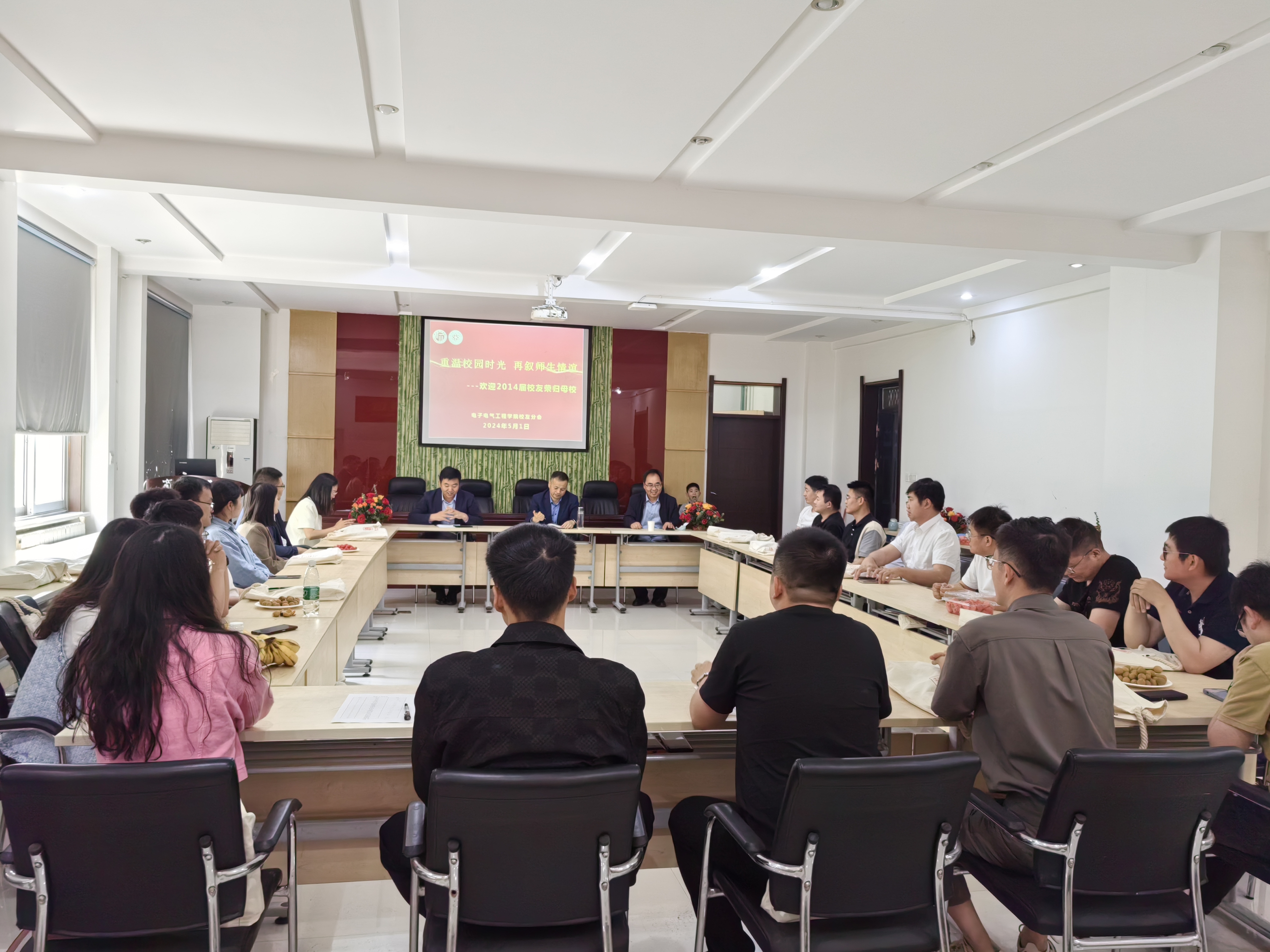 5月1日,我院电气工程及其自动化专业2014届校友从五湖四海齐聚睢阳校区,纪念毕业十周年,重温校园里的青春时光,再续当年师生情谊。院长赵纲领,副书记蒋玉涛,自动化系主任贾廷见等领导老师参加此次座谈会,座谈会由蒋玉涛主持。