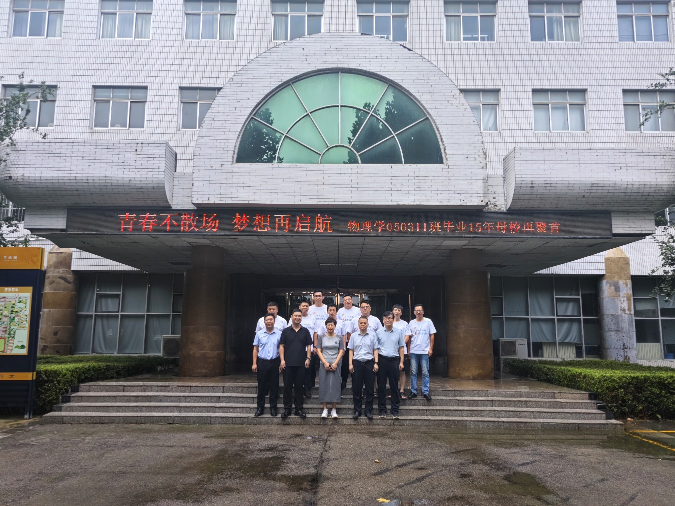 青春不散场,梦想再启航。7月27日,来自全国各地的2005级物理学专业校友齐聚睢阳校区,举行毕业15周年母校再聚首活动。院党委书记李琳、院长赵纲领、副书记蒋玉涛、副院长曾庆国,物理学050311班辅导员时光参加。