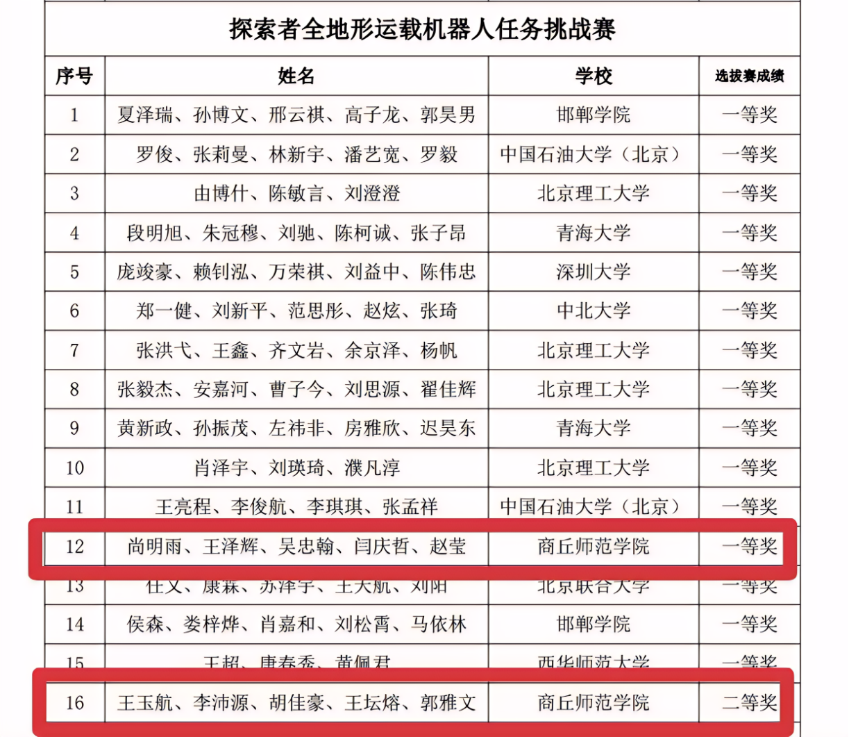 近日,由中国人工智能协会主办的第五届国际青年人工智能大赛-中国赛区选拔赛比赛结果公布。我校威廉williamhill共有2支队伍参加了探索者全地形运载机器人任务挑战赛,分别荣获了全国一等奖和二等奖。