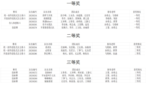 近日,由中国人工智能学会主办,北京理工大学承办的“2023中国智能机器人格斗及竞技大赛”获奖结果公布,经过初赛选拔,我校威廉williamhill和国际教育学院共12支队伍进入总决赛。最终,在指导老师和参与学生的共同努力下取得一等奖5项、二等奖3项、三等奖4项的佳绩。