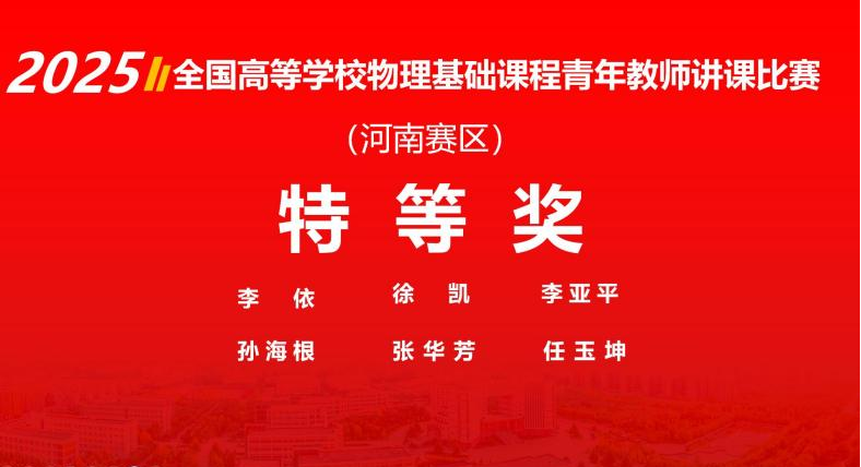 5月10日,2025年全国高等学校物理基础课程青年教师讲课比赛(河南赛区)圆满落幕。我院孙海根老师凭借扎实的专业知识、精湛的教学技艺和出色的课堂表现,在众多参赛选手中脱颖而出,荣获特等奖。为其教学生涯增添了浓墨重彩的一笔,也为学院争得了荣誉。