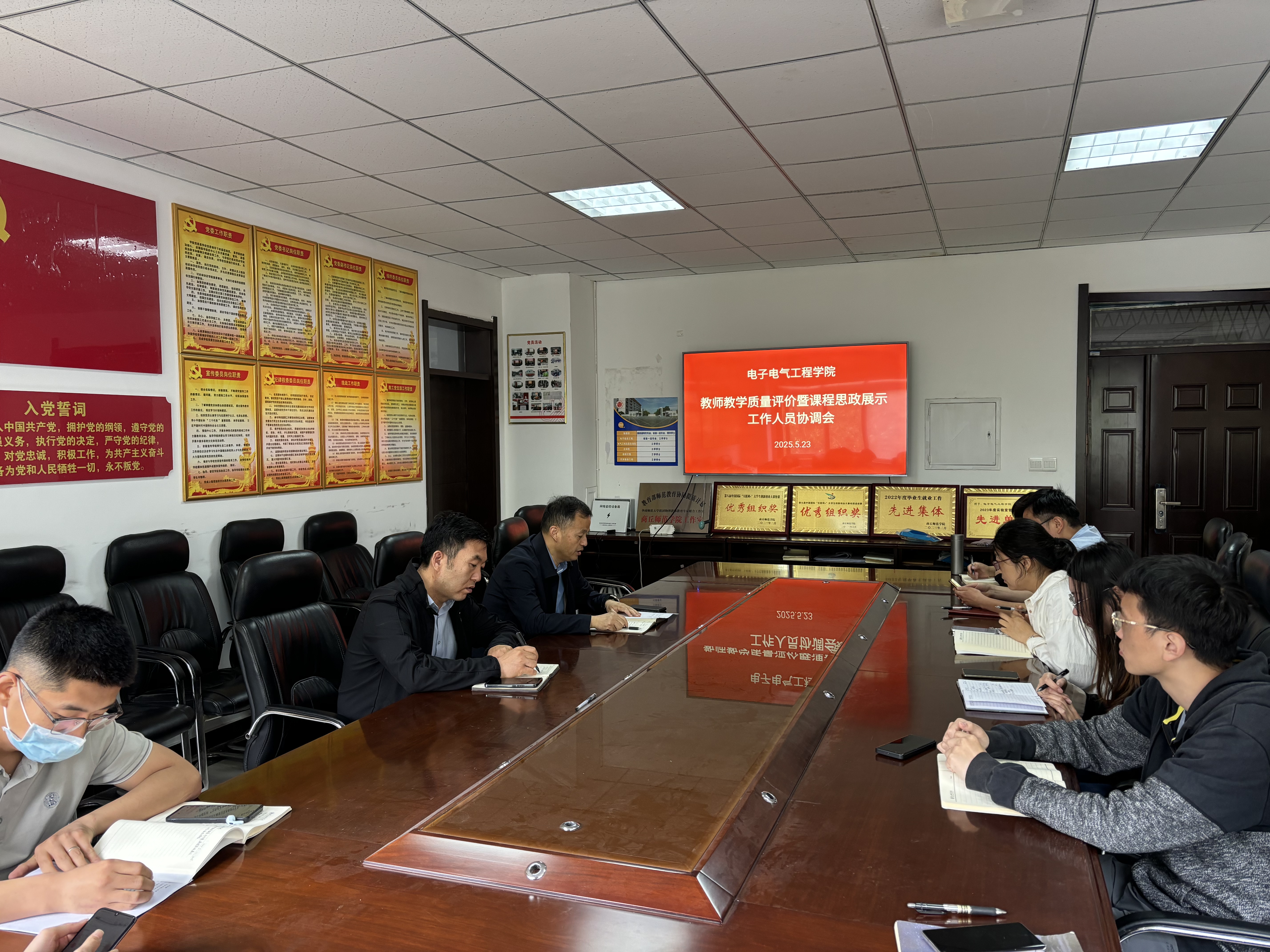 5月23日,我院于物电楼206召开教师教学质量评价暨课程思政展示工作人员协调会。院长赵纲领、副书记蒋玉涛、教学办主任吕志、学工办主任孙莉娟以及相关工作人员参加了此次会议。