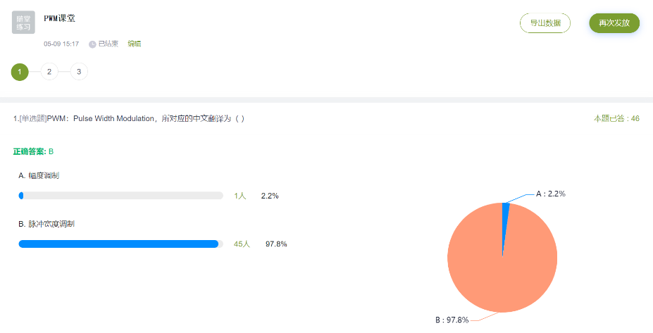 公开课伊始,课程以“变频空调为什么能省电”为话题,引入节能减排、绿色发展,切合当前“碳达峰”、“碳中和”等理念融入课程思政,通过学习通线上平台进行基础知识抢答、随堂练习等线上互动环节,强化学生对理论内容的学习。