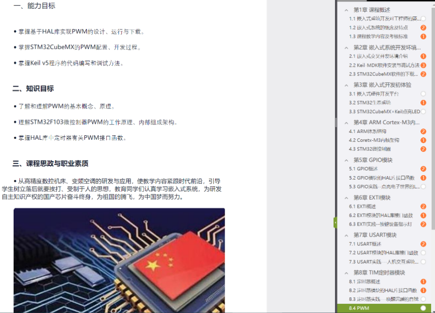 课中以智能台灯的硬件拆解小视频,讲述技术背后所蕴含的哲学思想、文化基因和价值范式,引导学生关注行业最新动态,树立工程意识,从专业课程角度分析智能台灯实现调温调光的工作原理,并以PWM呼吸灯这个典型任务案例,引导学生以小组进行动手实践,实现从理论到实践,从知识向技能转化的实践探索。