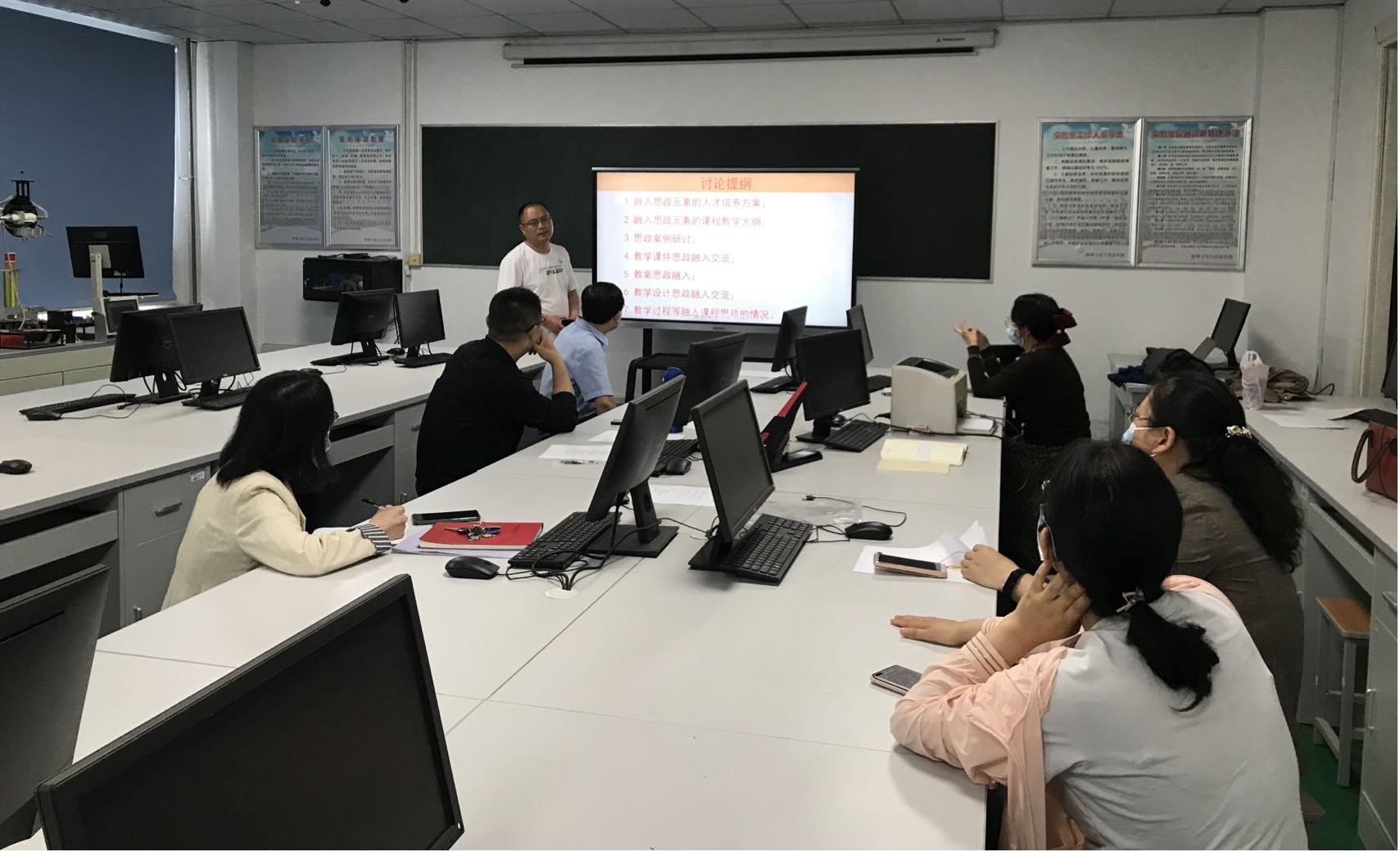 会议上,谢煜表示在“大思政课”的背景下,对学生的思想政治教育本身就是一个复杂系统,课程团队除了在课堂教学中进行了课程思政的初步实践之外,还在其他育人环节中进行了融入思政教育点的尝试。贾满满表示教师应该围绕“价值塑造、能力培养、知识传授”三位一体的课程建设目标,在课程内容中寻找与社会主义核心价值观、“四个自信”、家国情怀、工匠精神、人文情怀等相关德育元素的触点和融点,通过思政案例等教学素材的设计运用,以“润物无声”的方式将正确的价值追求、理想信念和家国情怀有效地传递给学生。