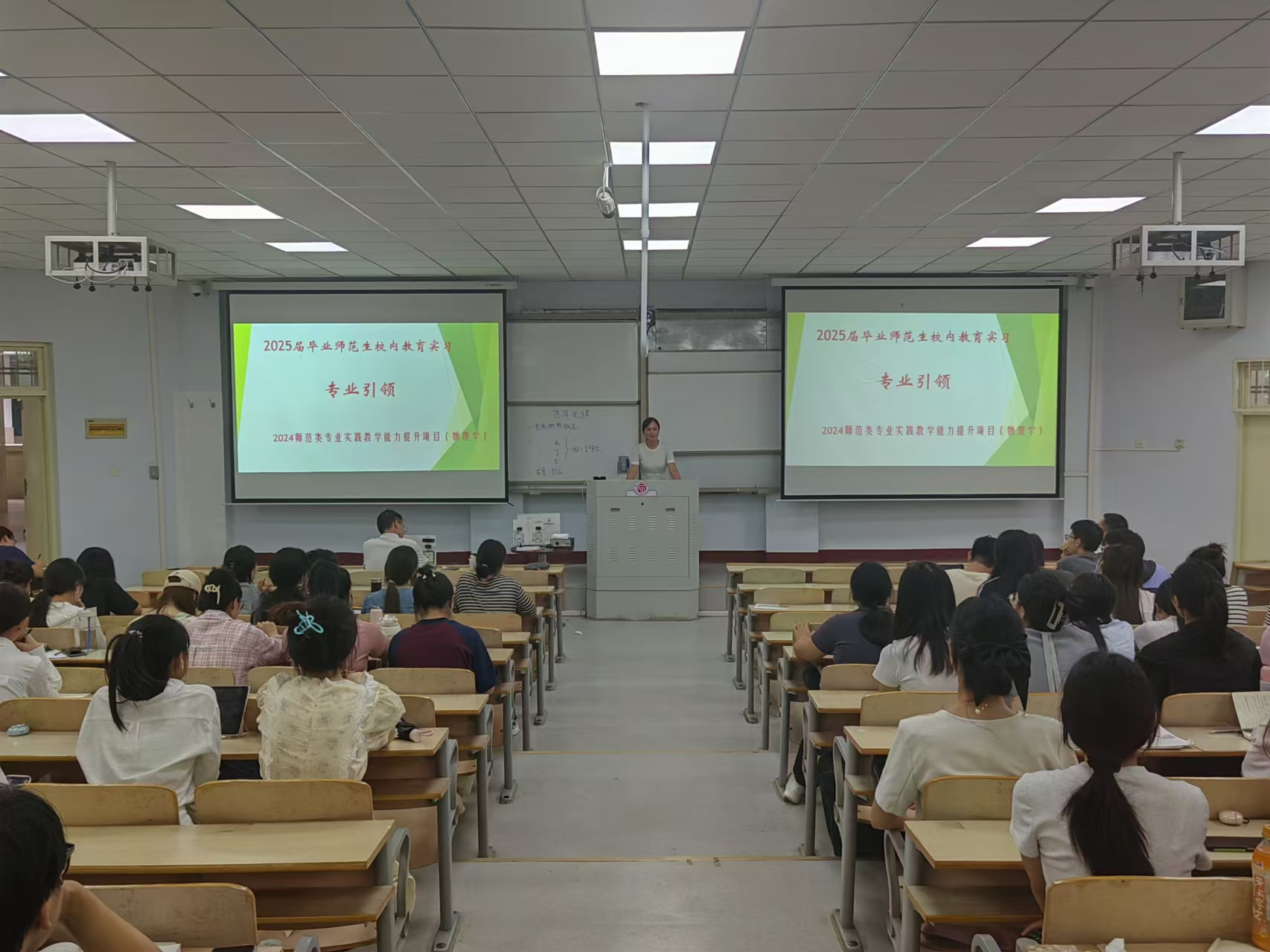 9月10日,在睢阳校区1号教学楼106教室,我院邀请商丘市实验中学两位一线优秀教师:高扬和马晓慧,分别为学生带来一堂公开课和教学技能专业讲座,曾庆国副院长、校内指导教师和21级参加校内教育实习的物理学专业全体学生参加。