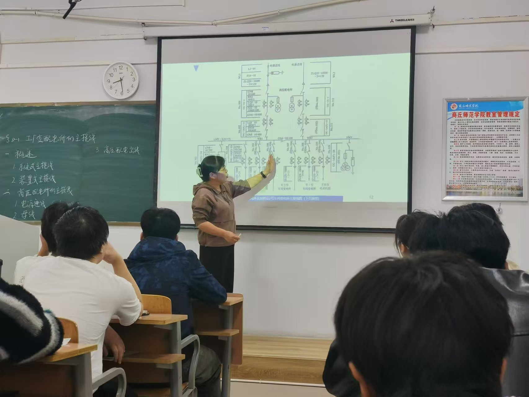 首先,张宁老师采用抢答的形式针对上次课高压一次设备的内容进行了复习,并顺利引入到本节新课程高压一次主接线的授课内容。启发式教学贯穿始终,深入浅出,教学过程不断地抛出问题,解决问题。