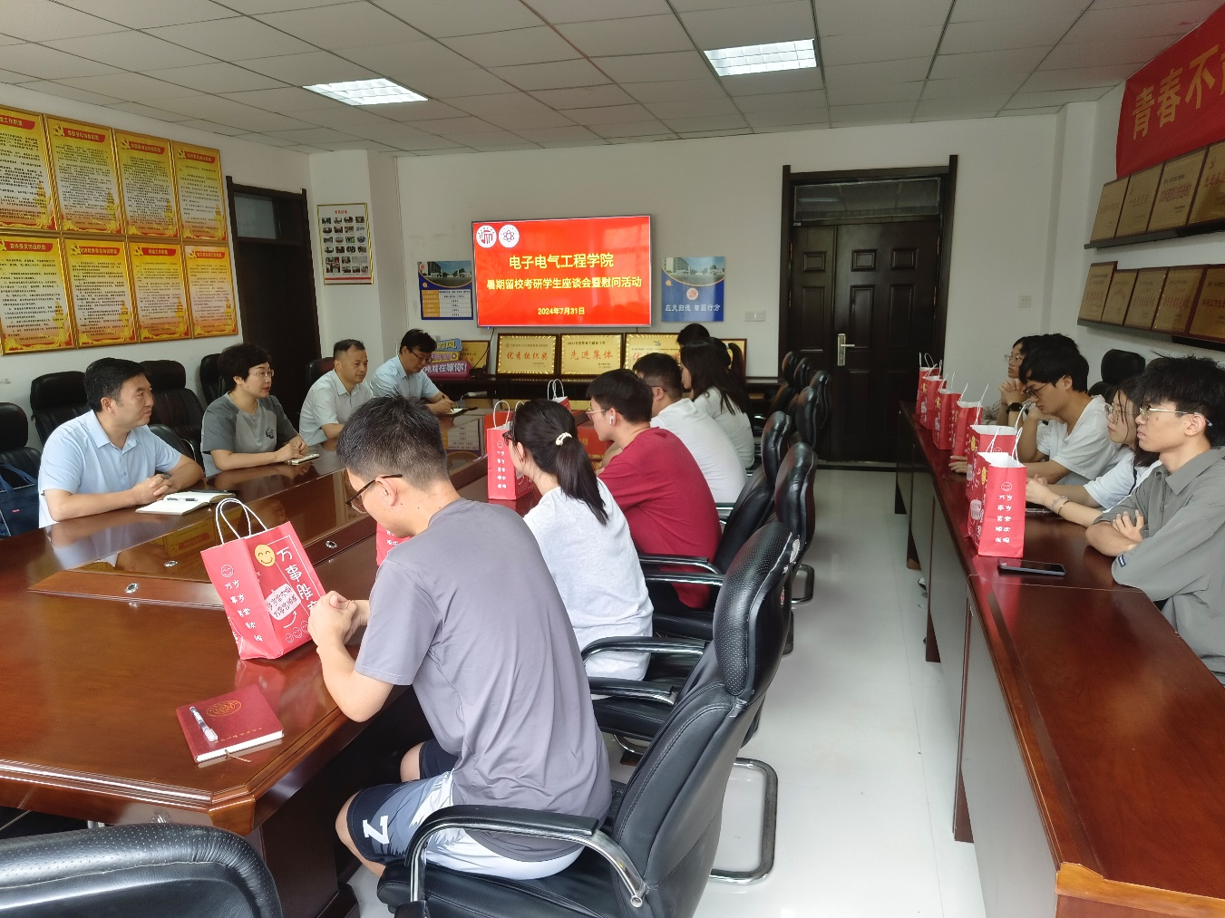 7月31日,我院在睢阳校区开展暑期留校考研学生座谈会暨慰问活动。党委书记李琳、院长赵纲领、副书记蒋玉涛、副院长曾庆国、学工办主任兼毕业班辅导员孙莉娟、留校考研学生代表参加了此次座谈会。会议由蒋玉涛主持。