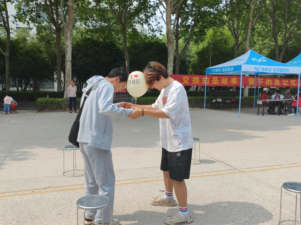 本次活动吸引了睢阳校区众多学生的参与。在活动现场,大家全情投入,两人成组,用头顶住气球,保持不掉落,完成行走路线,成功将气球投入桶中,并获取打卡印章。活动过程中,学生们采用不同的方法完成任务,有效锻炼了他们的思考能力和活动能力。大家也通过这个游戏缓解了心理压力,增强了合作沟通意识,增加了学生相互之间的默契程度。